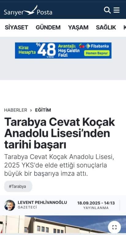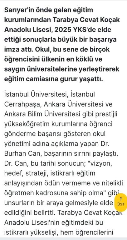 Yakaladımız başarılarla Sarıyer Posta'ya haber olmanın mutluluğunu yaşıyoruz. Üniversiteye yerleşen öğrencilerimize, onları sınavlara hazırlayan nitelikli öğretmen kadromuza ve başarımızı fark eden Sarıyer Posta gazetesine çok teşekkür ederiz...